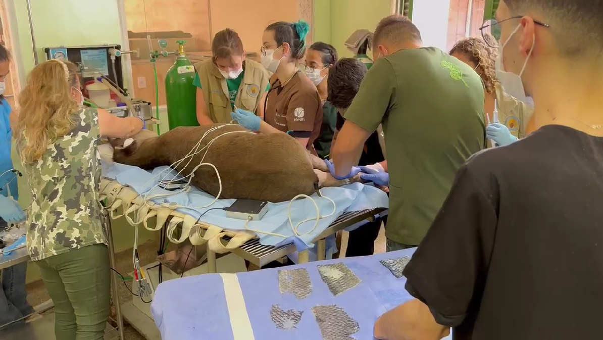 O animal havia caído em um buraco de cerca de três metros de profundidade após se perder do bando para fugir de um incêndio no Núcleo Rural Alexandre Gusmão, em Brazlândia. Depois de ser encaminhado ao Hfaus e passar por exames, teve constatada uma fratura na coluna e precisou ser submetido a cirurgia ortopédica. O bichinho passará por tratamento e reabilitação.