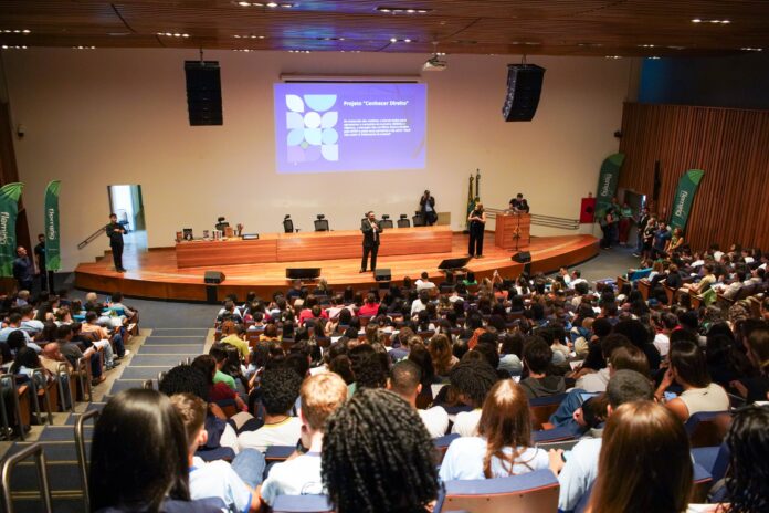 A Defensoria Pública do Distrito Federal (DPDF), por meio da Escola de Assistência Jurídica da DPDF (Easjur/DPDF), reuniu 700 estudantes de diversas regiões administrativas do DF em aulão preparatório para o Programa de Avaliação Seriada (PAS) da Universidade de Brasília (UnB) e o Exame Nacional do Ensino Médio (Enem) no auditório da Câmara Legislativa do Distrito Federal (CLDF), que atingiu a capacidade máxima. A conferência, intitulada A sustentabilidade das relações humanas a partir das políticas públicas: construindo uma cidadania ativa foi realizada nesta quinta-feira (27), em parceria com a Defensoria Pública da União (DPU) e outras instituições públicas e privadas.
