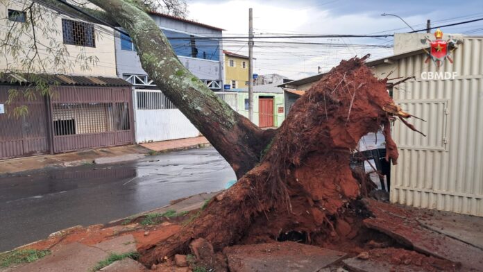 O Corpo de Bombeiros Militar do Distrito Federal (CBMDF) atendeu, na tarde desta segunda-feira (10), uma ocorrência de queda de árvore de grande porte sobre uma residência na quadra 30 do Paranoá. A corporação informou que a chamada foi registrada às 15h43 e mobilizou quatro viaturas para o atendimento.