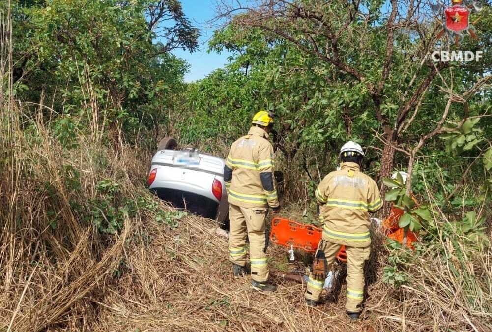 Capotamento de veículo deixa idosa ferida em estrada de terra em Planaltina