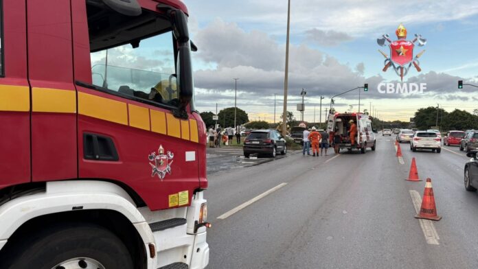 Uma colisão entre dois carros deixou feridos no fim da tarde deste domingo (9) na EPIA, em frente à antiga Rodoferroviária, sentido Granja do Torto. O Corpo de Bombeiros Militar do Distrito Federal (CBMDF) atendeu a ocorrência às 17h38 e empregou seis viaturas para o resgate.
