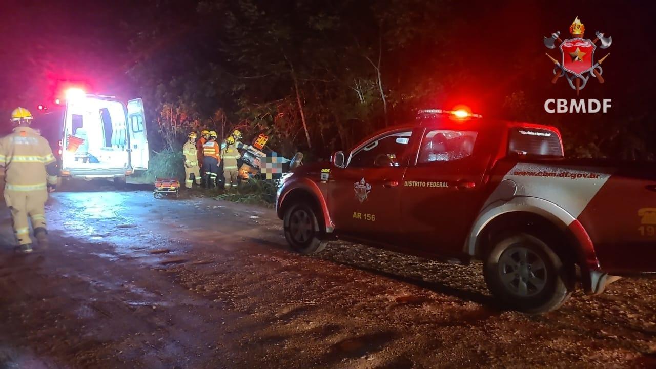 O capotamento de um veículo utilitário mobilizou equipes do Corpo de Bombeiros Militar do Distrito Federal (CBMDF) na noite deste sábado (20/12/2025), na região do Núcleo Rural Santos Dumont, em Planaltina, próximo ao Vale do Amanhecer.