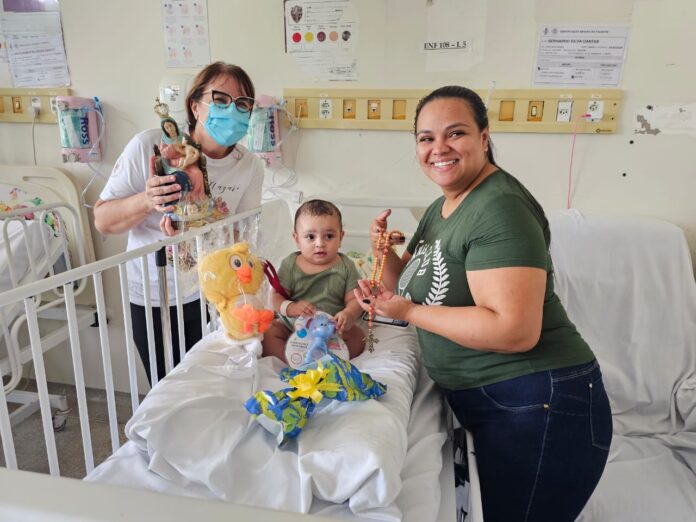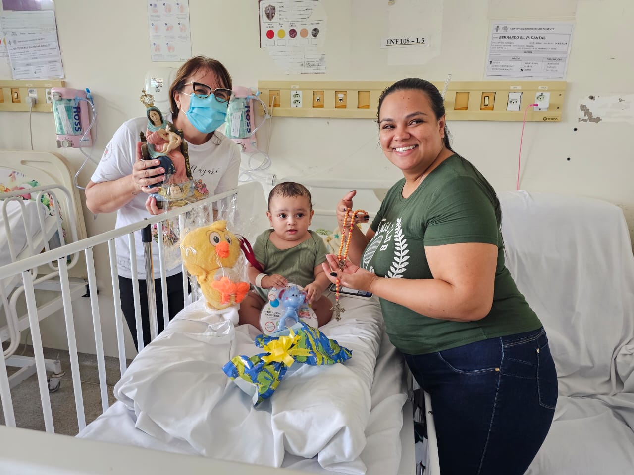 Também foram entregues terços para as mães e pais que acompanhavam seus filhos na internação. “Que bênção poder receber uma visita tão maravilhosa, eu nem esperava. Adorei meu terço, achei lindo e o presente vai ajudar bastante a distrair meu filho. Internamos ontem e infelizmente teremos que passar o Natal aqui no hospital”, relata Gláucia Leão, mãe do pequeno Jefte, de 2 anos.