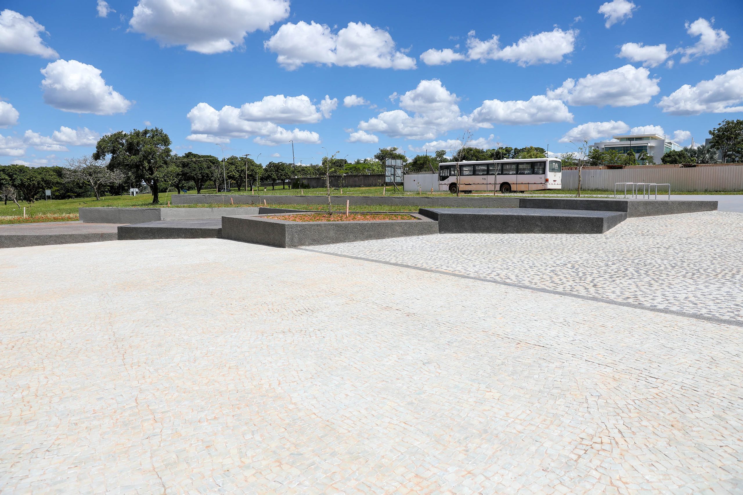 A praça já conta com iluminação pública – no último dia 12, foram instalados nove postes, sendo quatro de 16 metros, com quatro pétalas com LED de 215 w, e cinco de aço, de 7,5 metros com luminária de 120 w. O serviço foi executado pela CEB Iluminação Pública e Serviços (CEB IPes).