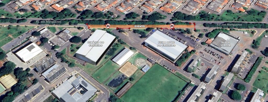 A partir das 9h, um trecho da Avenida das Mangueiras será interditado nas imediações do Ginásio do Cruzeiro e do Super Veneza. A liberação está prevista para as 13h.