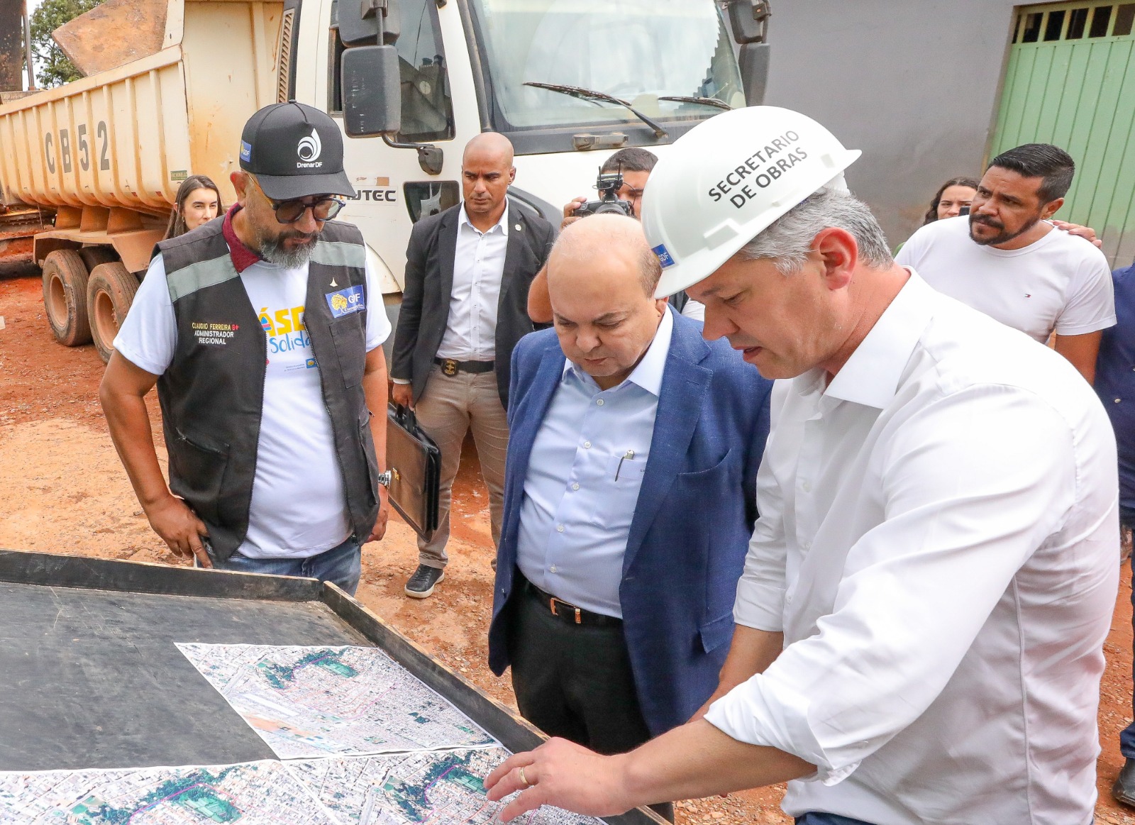 O governador Ibaneis Rocha visitou, nesta quinta-feira (10), as obras de infraestrutura urbana nos trechos 2 do Sol Nascente. Pela manhã, o chefe do Executivo acompanhou de perto o andamento dos serviços de drenagem e pavimentação asfáltica no setor localizado atrás da Feira do Produtor, entre as quadras 128 e 136.