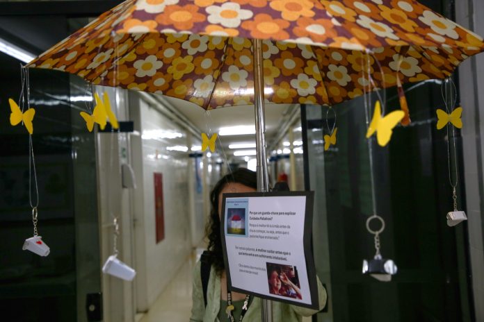 Realizada de forma itinerante nas enfermarias, com abordagens individuais e coletivas, as intervenções contaram com auxílio de dois guarda-chuvas, símbolo dos cuidados paliativos. “O cuidado paliativo é representado pelo guarda-chuva. Embora possa parecer precoce oferecer cuidados paliativos, o curso da doença pode ser como a chuva, difícil de prever. Diante do tratamento curativo, é possível usar o guarda-chuva num momento de sofrimento, serviço que é justamente oferecido pela equipe especializada”, completou a nutricionista.