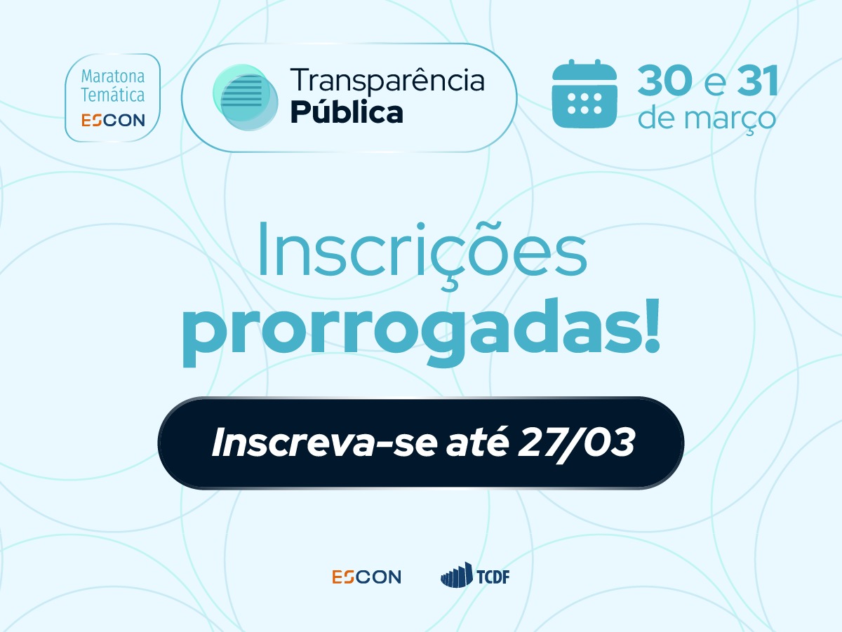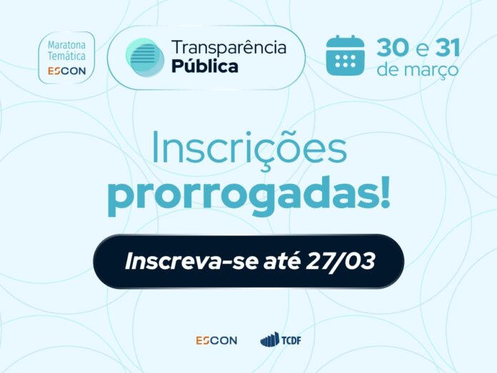 A Escola de Contas do Distrito Federal prorrogou até sexta-feira (27) o prazo de inscrições para a Maratona Temática “De Fiscais a Guardiões: o papel ampliado dos Tribunais de Contas na Transparência Pública”.