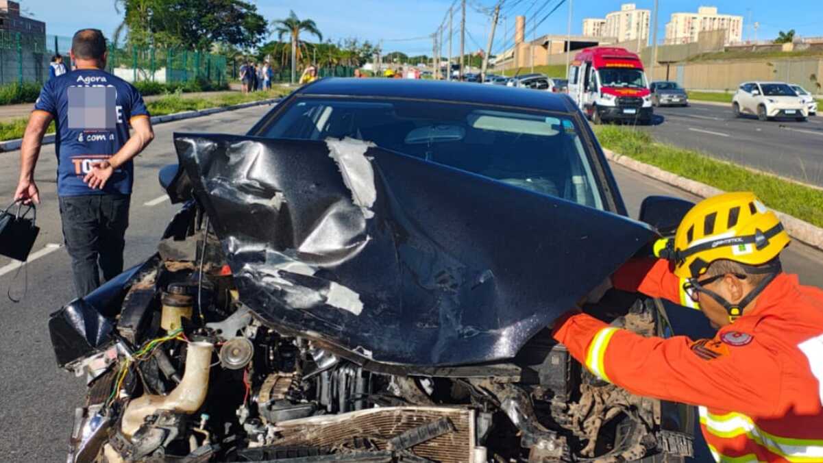 Ao chegarem ao local, as equipes de resgate encontraram uma colisão envolvendo três veículos: um Hyundai HB20, de cor preta; uma motocicleta Yamaha, de cor prata; e um Fiat Idea Adventure, também de cor prata, que acabou colidindo contra um poste após o impacto.