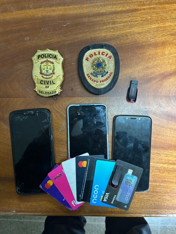 A ação, conduzida pela Divisão de Falsificações e Defraudações (DIFRAUDES) da PCDF, teve o apoio da Polícia Legislativa do Senado. Durante o cumprimento do mandado de busca e apreensão, foram recolhidos três celulares, dois pen drives e diversos cartões bancários, materiais que serão periciados para aprofundar as investigações.