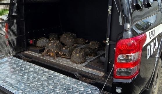 Os policiais cumpriram mandado de busca e apreensão na residência e foram recebidos por um adolescente de 16 anos. Nos fundos do imóvel, a equipe encontrou um viveiro sujo, sem água, sem alimentos e com claros sinais de negligência. No espaço, foram localizados 12 jabutis e um cágado, todos mantidos em condições irregulares. Um dos animais estava solto em uma área cercada, sem possibilidade de acesso natural da fauna ao ambiente, caracterizando cativeiro ilícito.