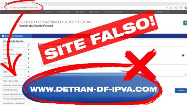 De acordo com o Detran-DF, a página falsa se apresenta como se fosse da “Secretaria de Fazenda do Distrito Federal – Receita do Distrito Federal” e oferece um campo para inserção do número do Renavam, com a suposta promessa de emitir o Documento de Arrecadação (DAR) do IPVA. A prática pode levar usuários a fornecerem dados pessoais e financeiros a golpistas.