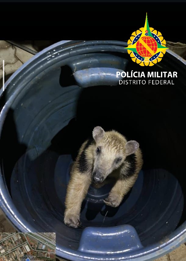 Um tamanduá-mirim foi resgatado na madrugada desta segunda-feira (10) por policiais militares do Batalhão de Polícia Militar Ambiental (BPMA), após ser localizado caminhando desorientado em uma via pública do Setor de Chácaras Lúcio Costa – Setor de Inflamáveis, no Guará. O animal corria risco imediato de atropelamento.