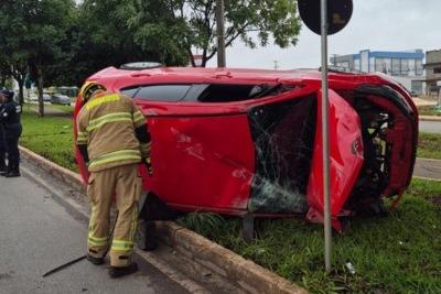 Um motorista ficou ferido após uma colisão que resultou no capotamento de um Fiat Argo na manhã desta quinta-feira (4/12), na QNO 09, próximo à Vila Olímpica, em Ceilândia. O Corpo de Bombeiros Militar do Distrito Federal (CBMDF) foi acionado às 6h57 e enviou três viaturas para o atendimento. O veículo vermelho foi encontrado lateralizado no canteiro central após bater em um GM Corsa verde.