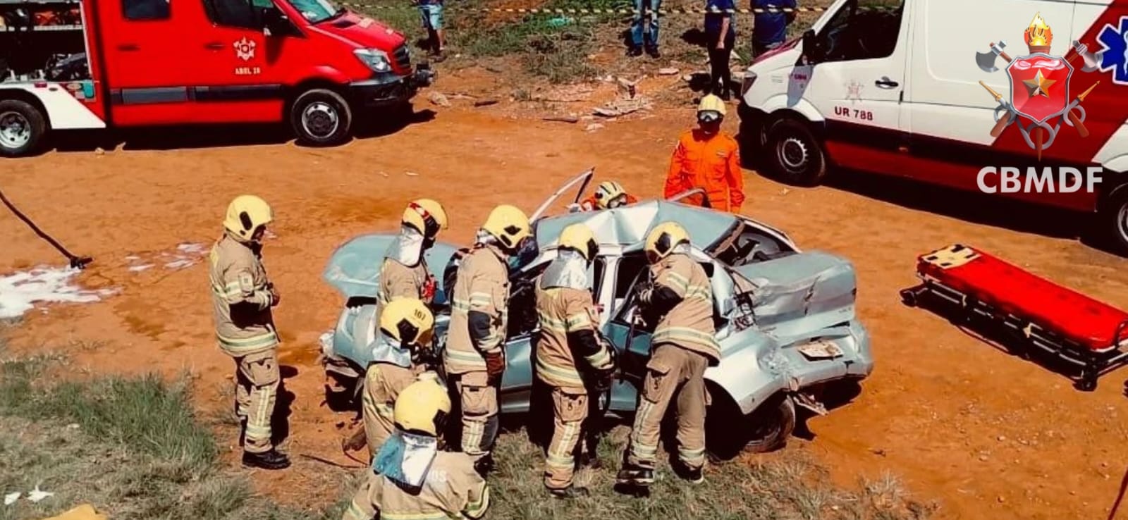 O Corpo de Bombeiros Militar do Distrito Federal (CBMDF) foi acionado às 8h56 e enviou três viaturas para o local.
