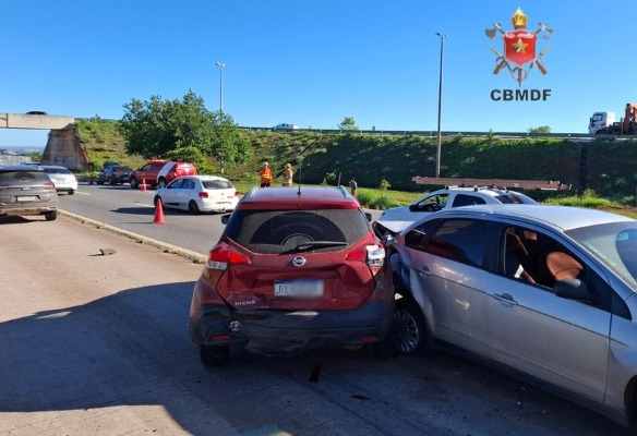 Uma colisão envolvendo quatro veículos mobilizou o Corpo de Bombeiros Militar do Distrito Federal (CBMDF) na manhã desta terça-feira (23/12/2025), na BR-040, nas proximidades do viaduto de Taguatinga, no sentido Brasília. Para o atendimento, foram empregadas três viaturas de socorro.
