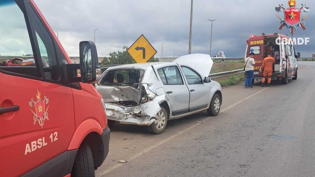 Uma criança ficou ferida após um acidente envolvendo dois veículos na DF-040, na parte superior do viaduto da saída de Santa Maria, na tarde deste domingo (23). O Corpo de Bombeiros Militar do Distrito Federal (CBMDF) foi acionado às 12h05 e enviou três viaturas para o atendimento.