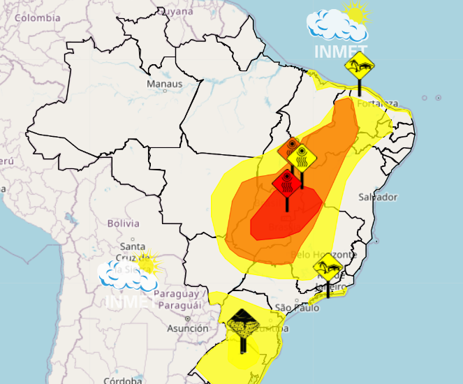 O alerta do Inmet abrange não apenas o Distrito Federal, mas municípios de Goiás, Minas Gerais, Tocantins, Bahia e áreas do Centro, Leste, Sul e Norte Goiano, Norte e Noroeste de Minas, Extremo Oeste Baiano e Vale São-Franciscano da Bahia, reforçando a necessidade de cuidados redobrados em toda a região.