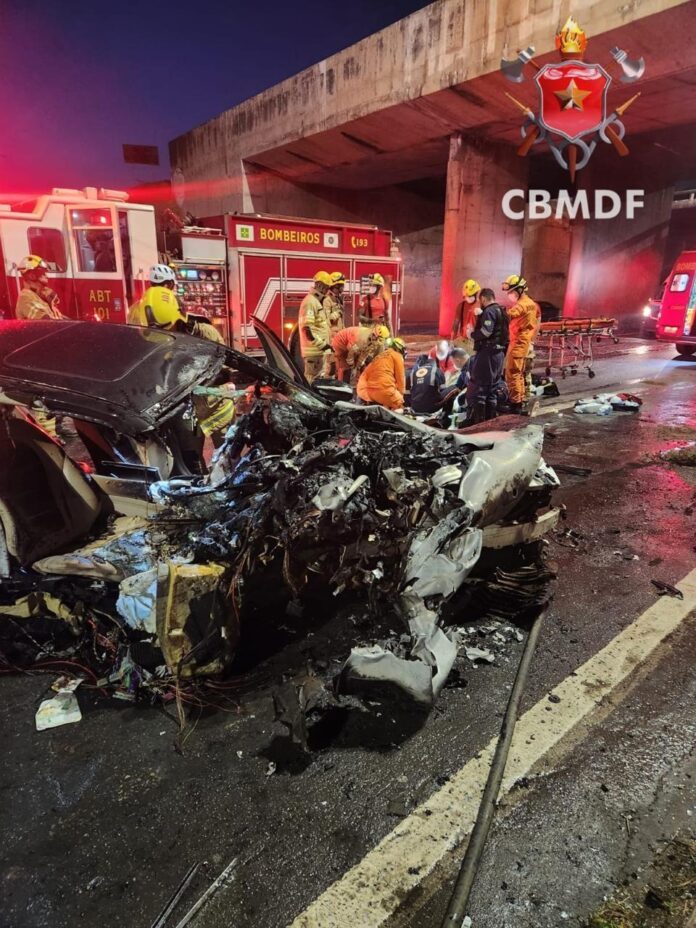 O Corpo de Bombeiros Militar do DF (CBMDF) foi acionado por volta das 4h28 e enviou cinco viaturas de socorro ao local. Ao chegarem, os militares encontraram duas pessoas dentro do veículo. O condutor, um homem cuja identidade não foi divulgada, estava em parada cardiorrespiratória e apresentava ferimentos incompatíveis com a vida, tendo o óbito constatado no local.