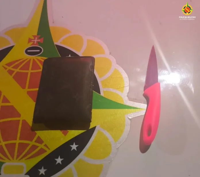 De acordo com informações da PMDF, um casal teria iniciado uma discussão acalorada com a funcionária do comércio local. O homem, após deixar o local, retornou momentos depois fazendo menção de estar armado — atitude que levou ao acionamento imediato das equipes policiais. Durante a abordagem, os militares encontraram uma faca e uma porção de substância com características semelhantes a entorpecente.