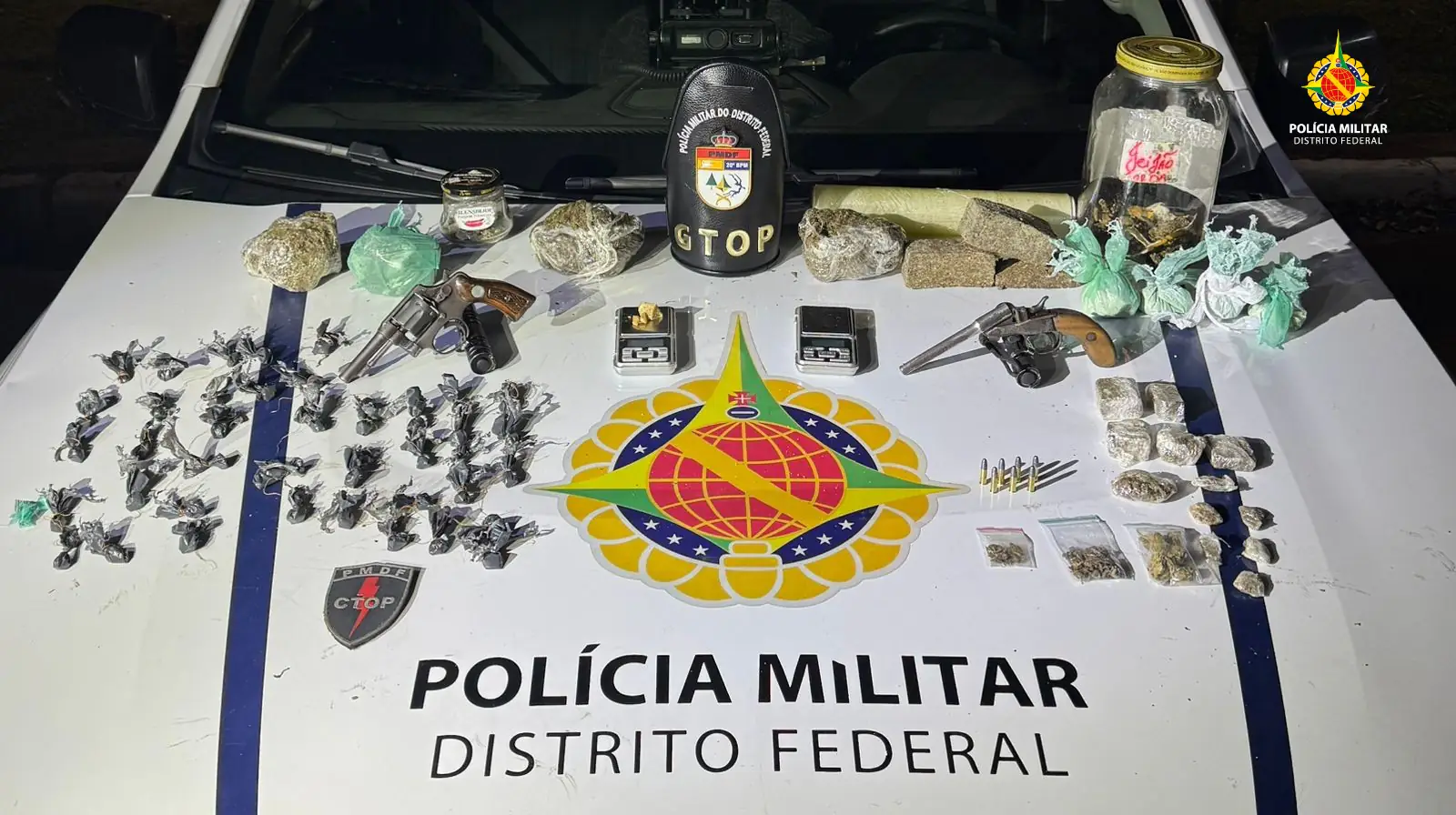 No mesmo local, também foram encontradas duas armas de fogo — um revólver calibre .22 e uma garrucha — junto a sete munições intactas. O material foi apreendido e levado para a 6ª Delegacia de Polícia (Paranoá).