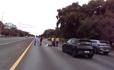 De acordo com os bombeiros, a vítima — ainda não identificada — tentava atravessar a via pública quando foi atingida por um carro de passeio. Segundo informações do Serviço de Motolância do SAMU, que prestou o atendimento médico ainda no local, o homem sofreu fratura no tórax e nas duas pernas, sendo encaminhado em estado grave para o Hospital de Base do Distrito Federal.
