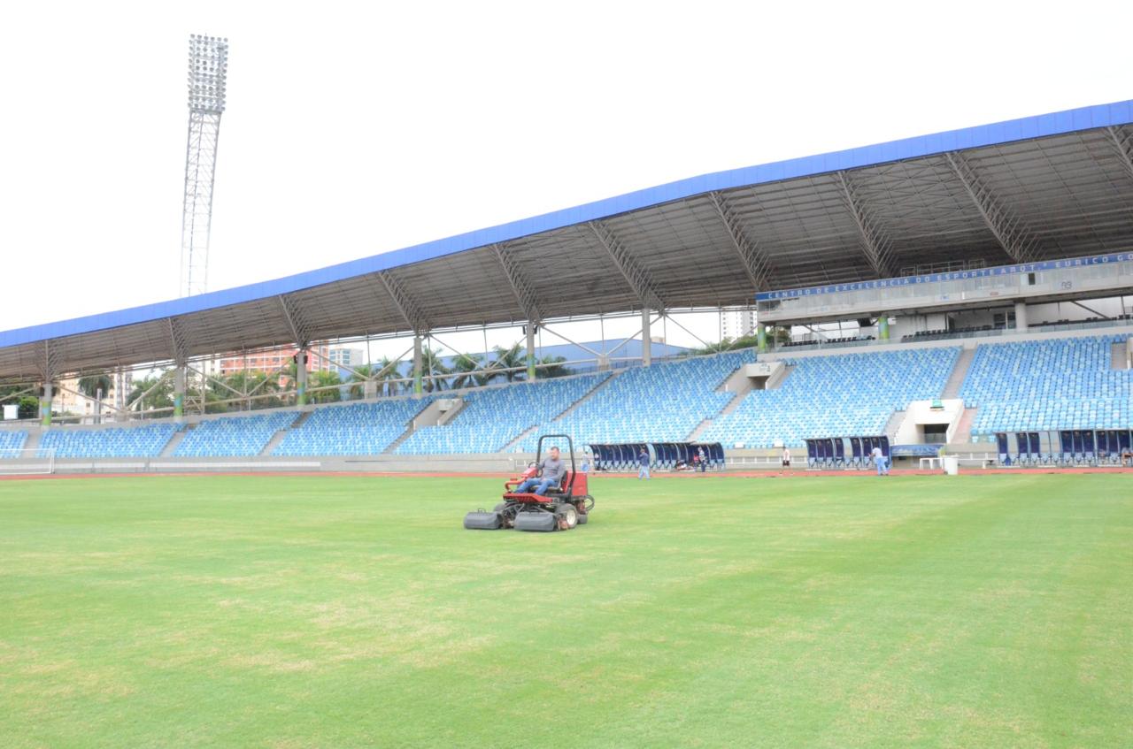 Unidade do Governo de Goiás, administrada pela Secretaria de Esporte e Lazer (Seel), o Estádio Olímpico Pedro Ludovico Teixeira, em Goiânia, passa por manutenção e revitalização do gramado para receber partidas do Campeonato Goiano de Profissionais da 1ª Divisão.