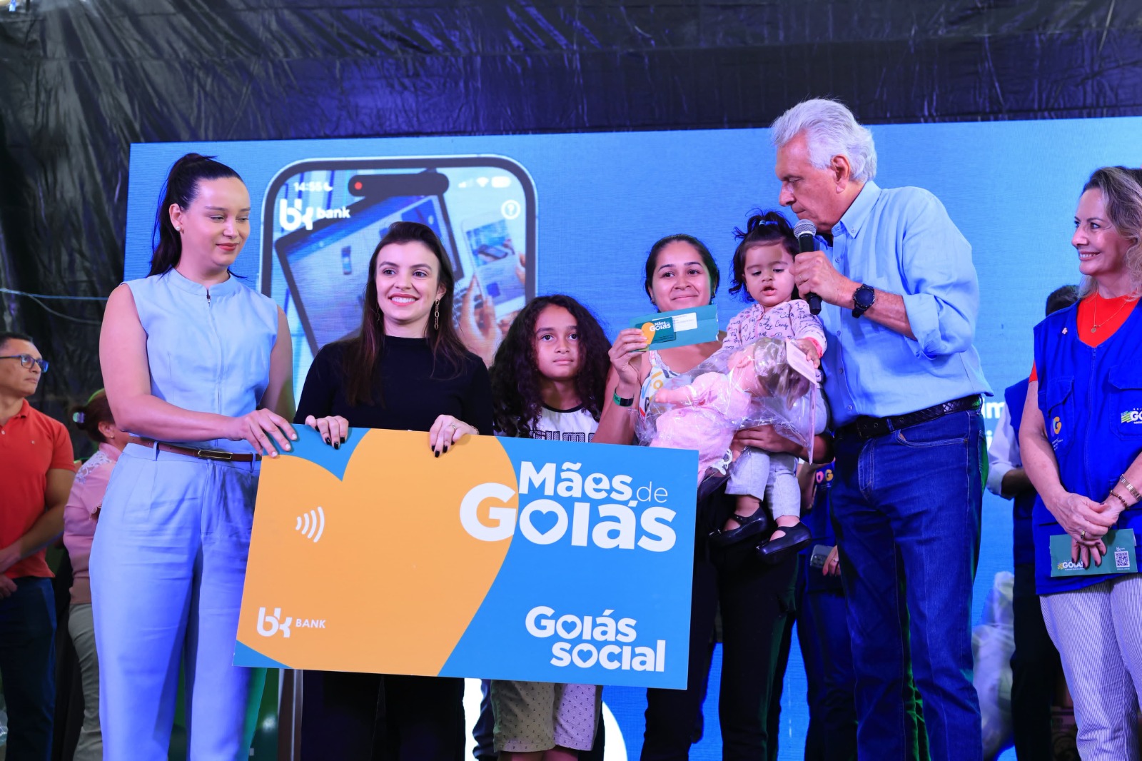 Caiado entregou os primeiros benefícios para as famílias presentes. Uma das contempladas com o Mães de Goiás foi a jovem Jaqueline Rodrigues da Silva, mãe de duas crianças. Desempregada há mais de um ano, ela conta com o auxílio mensal de R$ 250,00 para cuidar dos filhos.