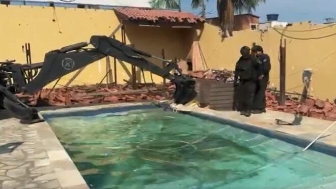 Foi demolido ainda um imóvel de alto padrão, classificado como “resort de luxo” pela Polícia Civil, em Parada de Lucas. O local era utilizado como esconderijo e base operacional do líder da facção, segundo as investigações. Outro mandado foi cumprido em uma academia de musculação, também usada pelos criminosos como ponto de encontro.