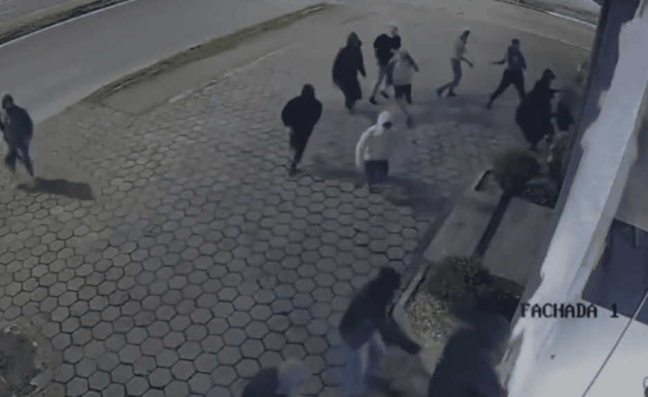 No vídeo, um dos suspeitos fica preso por alguns segundos no buraco aberto no vidro, impedindo a saída do restante do grupo. Quando consegue escapar, outro ladrão derruba a motocicleta e precisa de ajuda para levantar e fugir.
