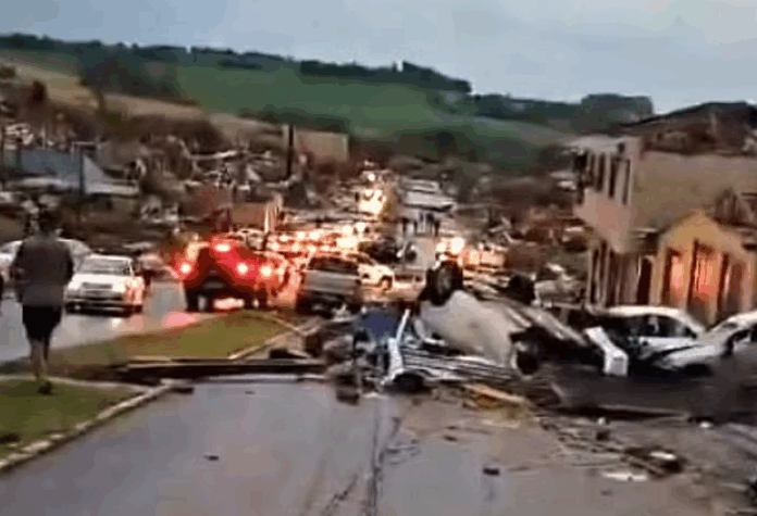 As imagens que circulam nas redes mostram casas destruídas, estruturas metálicas retorcidas e ruas cobertas por destroços. Moradores relatam momentos de pânico e cenas de total devastação.