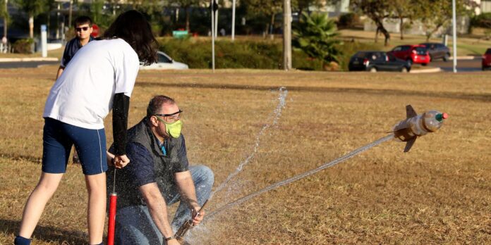 Já a Olimpíada Brasileira de Foguetes contempla estudantes do ensino fundamental e médio e também da educação superior. Os participantes devem construir e lançar foguetes com materiais como canudo, garrafa pet e tubo pvc, de acordo com cada nível. O alcance é medido pelos professores, que submetem os resultados na plataforma da olimpíada.