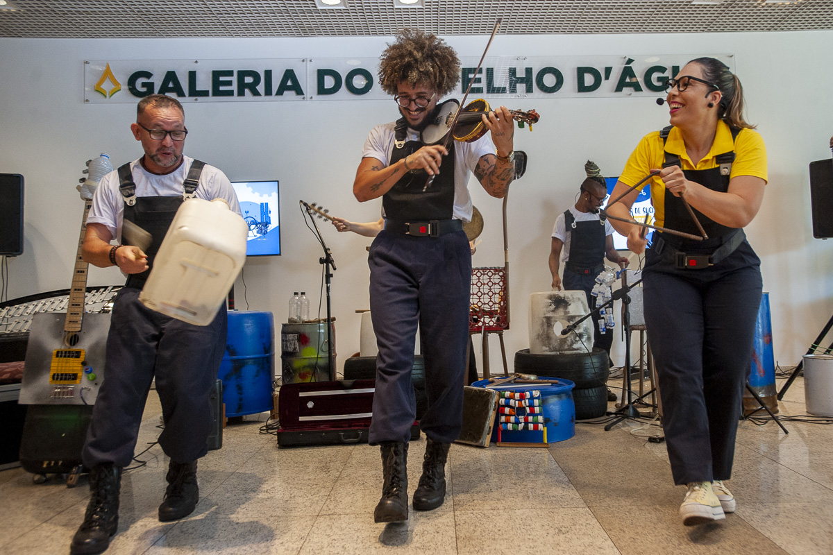 A Orquestra de Sucata levou música e sustentabilidade para a galeria do espelho d’água da Câmara Legislativa do Distrito Federal (CLDF), nesta terça-feira (1). A banda paulista confecciona instrumentos musicais por meio da reutilização de materiais como garrafas pet e de vidro, tampinhas, chaves, galões e peças de veículos automotivos. Os artistas transformaram um tanque de combustível em baixo, uma porta de carro em metalofone e um escapamento em guitarra, entre outros exemplos. As músicas são composições autorais sobre reciclagem.